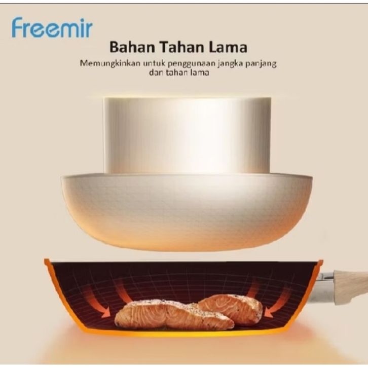 PROMO Freemir Wajan Cekung 24Cm Semi Presto Anti Lengket Tutup kaca Beige