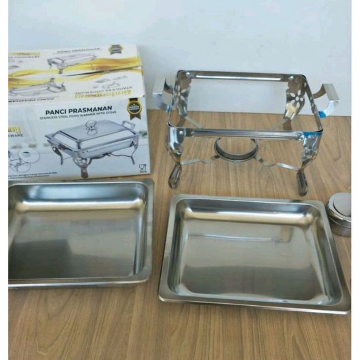 PROMO Chafing Dish Warmer Stove / Pemanas Segi Prasmanan Stainless Steel Golden Panny