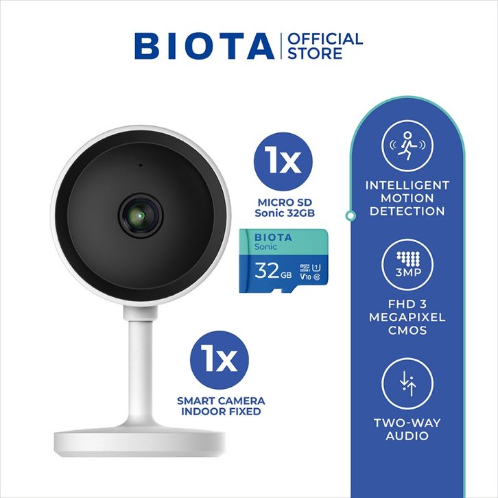 BIOTA Bundling Smart Camera Indoor Fixed - Kamera CCTV Indoor Wifi Bisa Pantau Dan Sambung Ke Hp + MicroSD