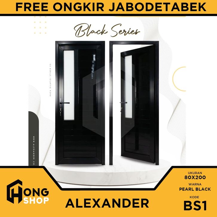 Pintu Kamar /Kantor / Outdoor UPVC Tebal ALEXANDER BLACK SERIES 80x200