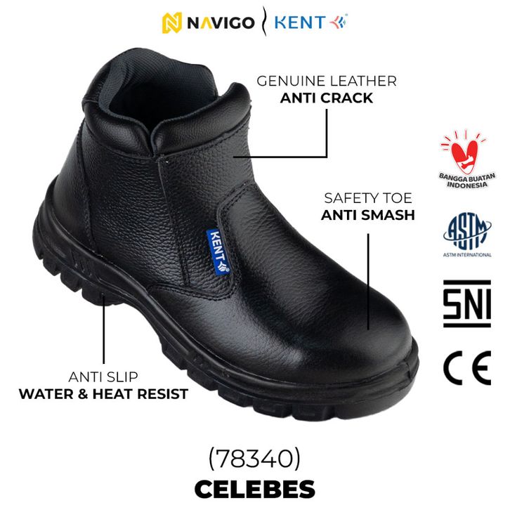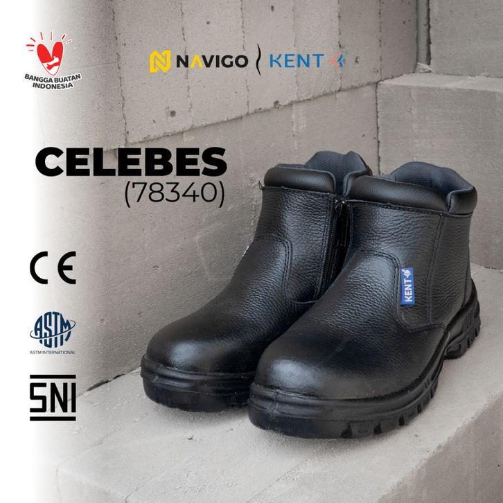 NAVIGO X KENT Sepatu Safety Pria Wanita KENT CELEBES 78340 - Standar SNI ASTM CE Kulit Asli Ujung Besi Slip Resist