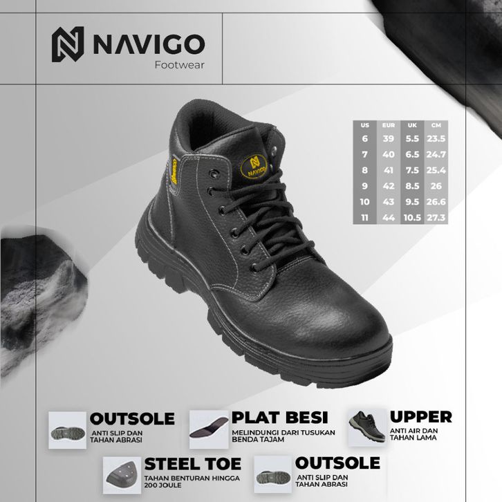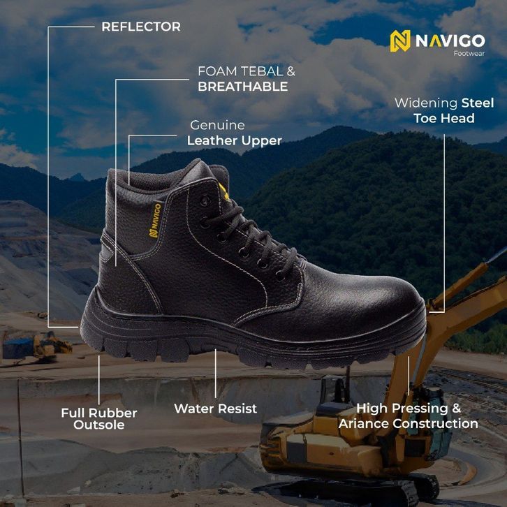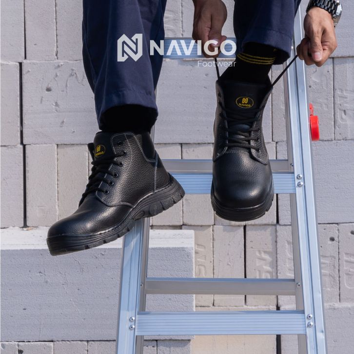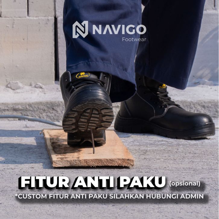 Navigo Sepatu Safety Pria Wanita SB Scorpion Hitam - Safety Boots Kulit Asli Ujung Besi Anti Slip