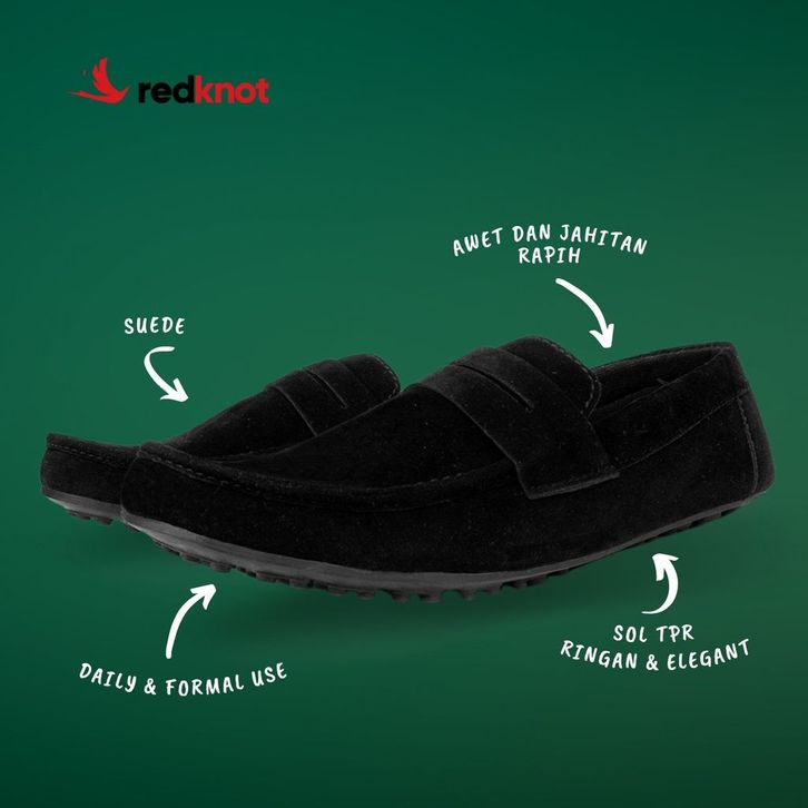 Redknot Stoboard Hitam - Sepatu Pria Loafer | Sepatu Slip On Formal | Mutlifungsi Untuk Diterima Kerja dan Sehari-hari