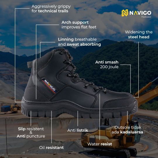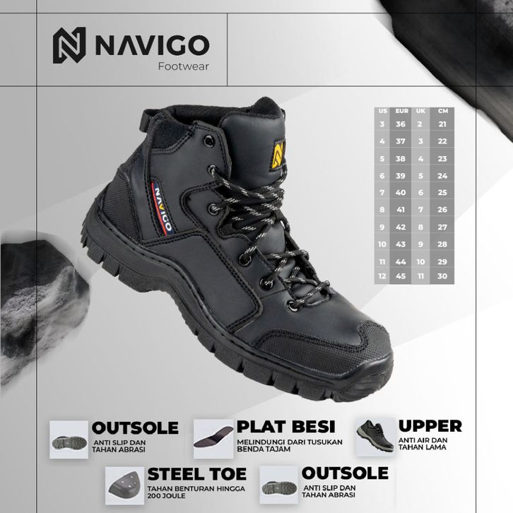 Navigo Sepatu Safety Pria Wanita SW2 Hi Black - Safety Shoes Anti Slip Outdoor Touring Hiking