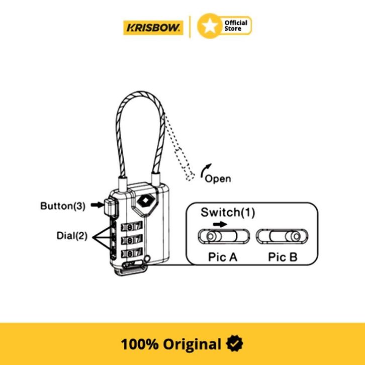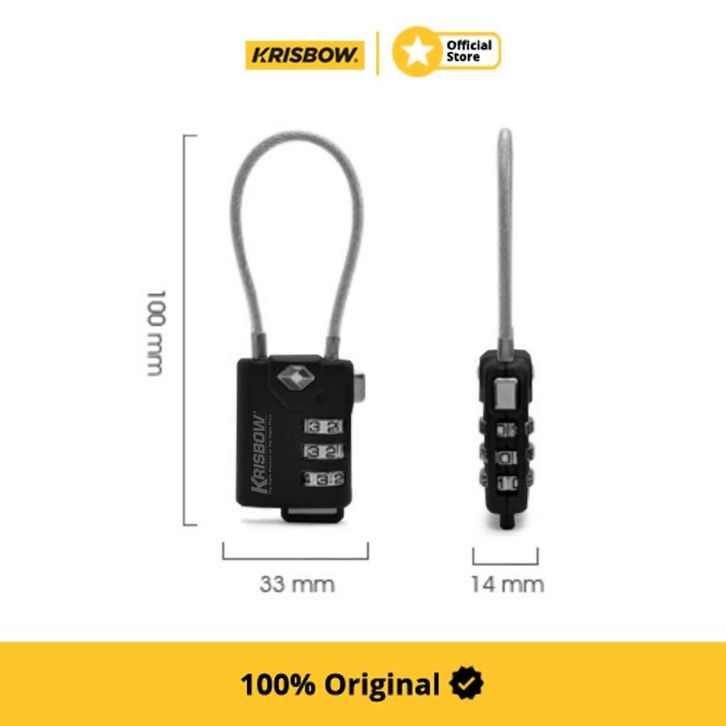 Krisbow Padlock Gembok Tsa 3 Angka W/ Pengikat Kawat - Hitam