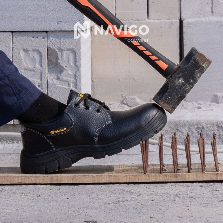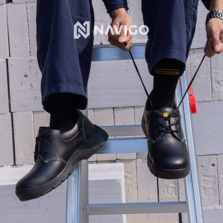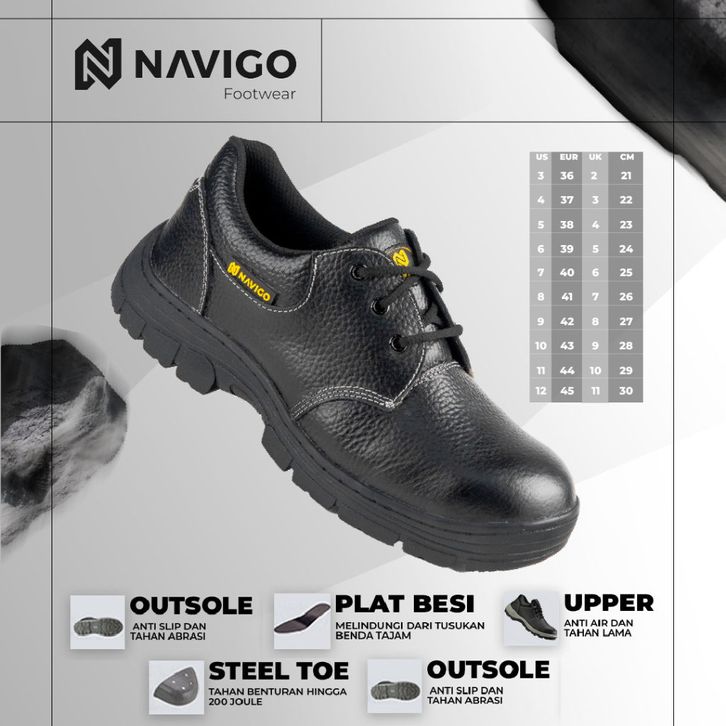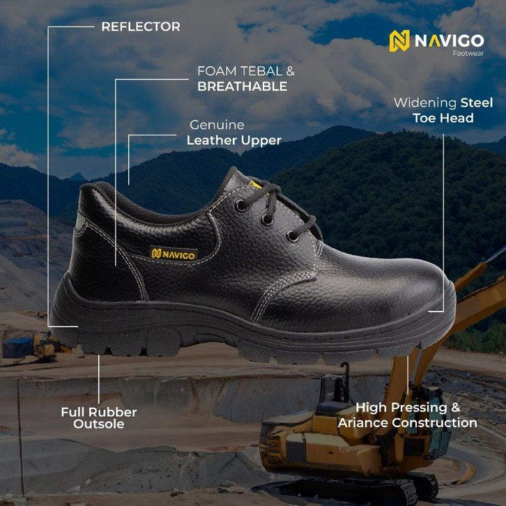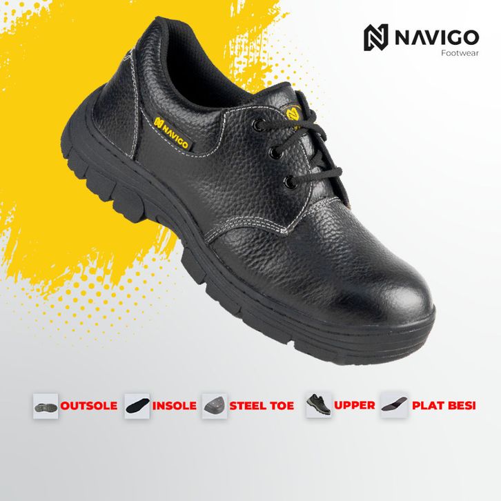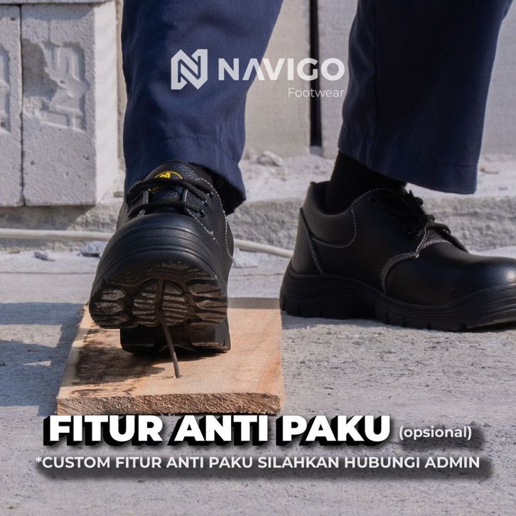 Navigo Sepatu Safety Pria Wanita SB Black Bu-ll - Safety Shoes Kulit Asli Ujung Besi Anti Slip