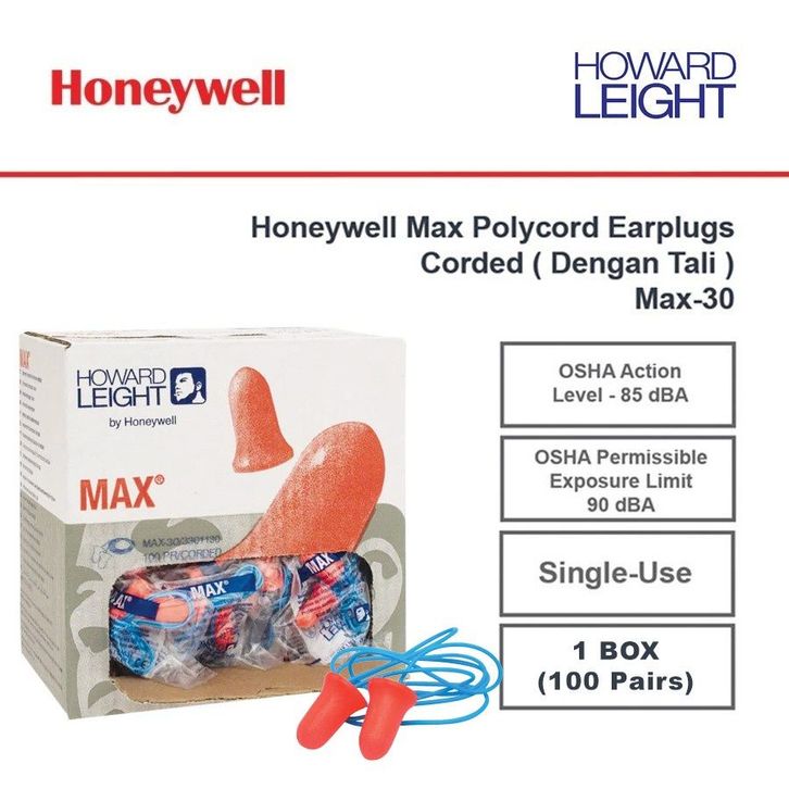 Earplugs Honeywell Corded Disposable Foam Earplugs MAX-30 - 1 BOX
