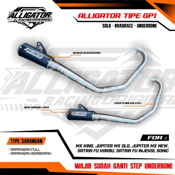 KNALPOT ALLIGATOR GP1 UB UNDERBONE MX KING MX OLD MX NEW JUPITER MX SATRIA FU WAJIB UNDERBONE