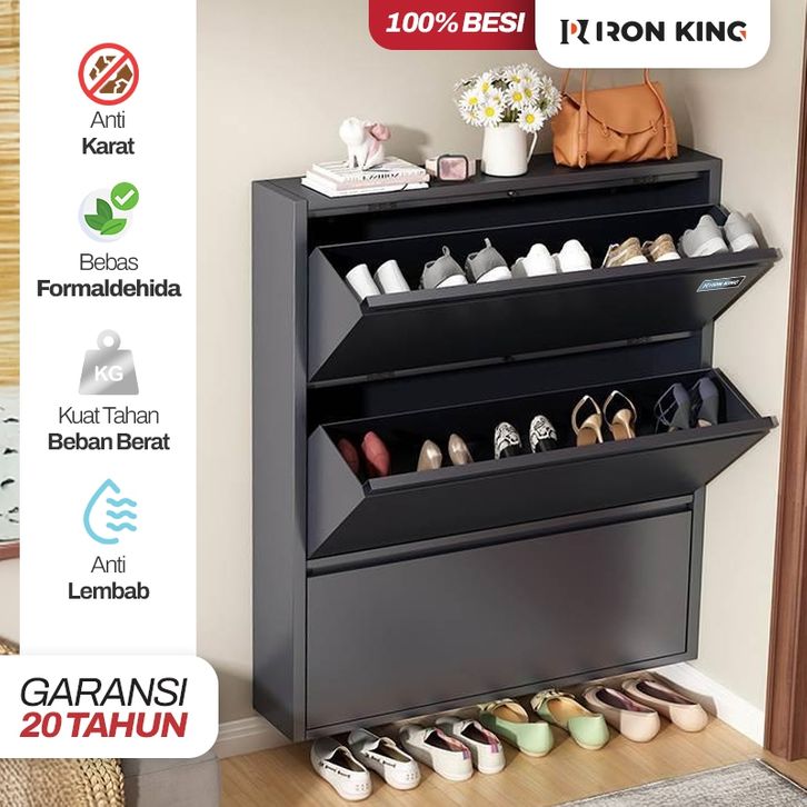 Rak Sepatu Besi Lemari Sepatu Susun Tertutup Lemari Aesthetic Tertutup
