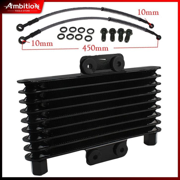 [Ada stock]Motorcycle Oil Cooler Oil Engine Radiator Aluminum Cooling Radiators 125ml M10 For 125CC-250CC