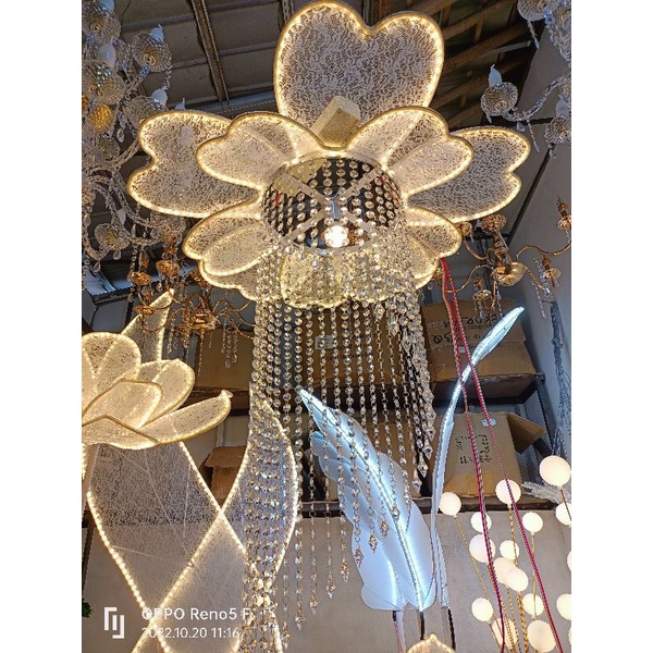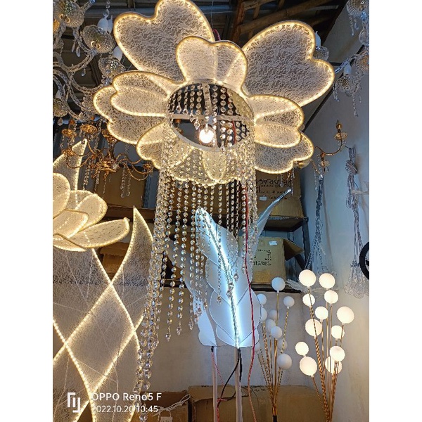 Lampu Hias Tenda Pelaminan Almaira Lampu Gantung Kelopak Plafon Tirai Akrilik Full Led Lampu Hias Bunga Lampu Hias Dekor