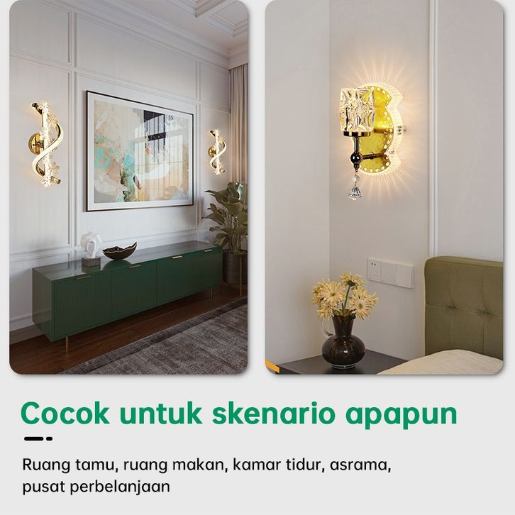 LAMPU DINDING KRISTAL MODERN 3 WARNA LAMPU DINDING KRISTAL RUANG TAMU MEWAH HIAS-B5-7