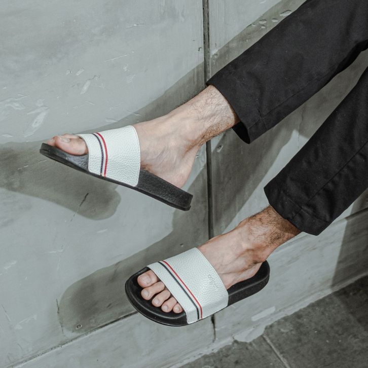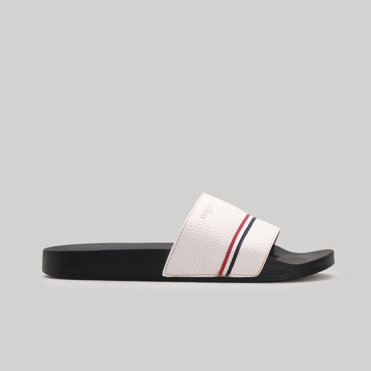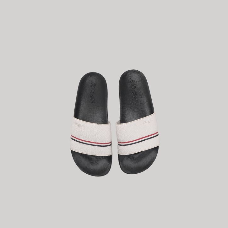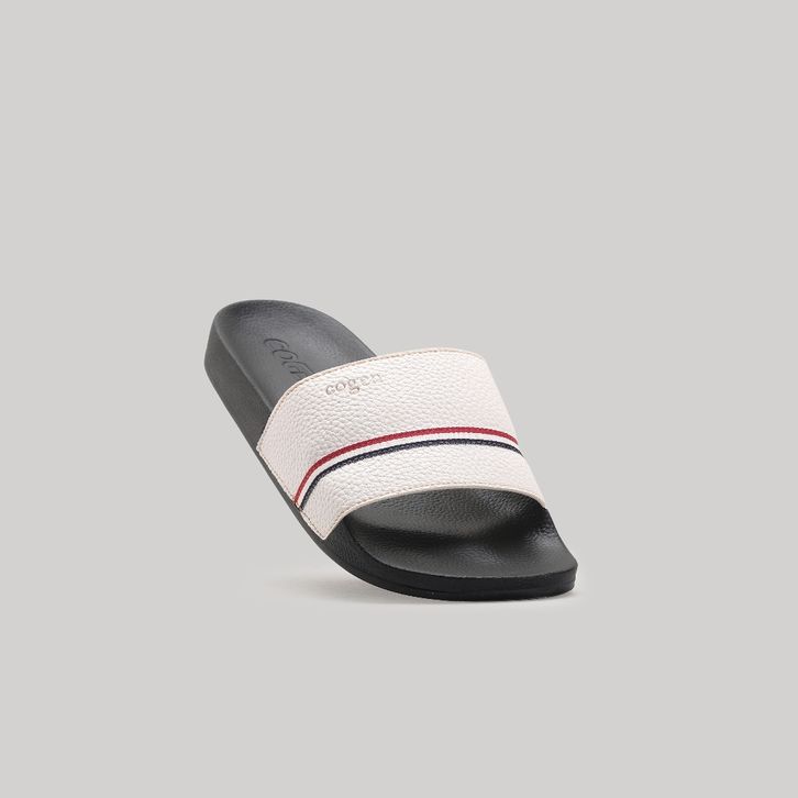 Cogen Sandal Slop Pria Kulit Rubber - Stripe White