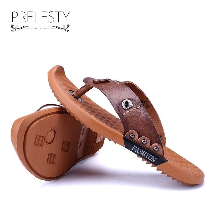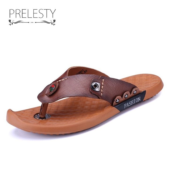 100 Kulit Asli NEW Sandal Jepit Pria Olahraga Sandal Outdoor Fashion Karet Rumah Sandal Santai Pria Sepatu Keren 040