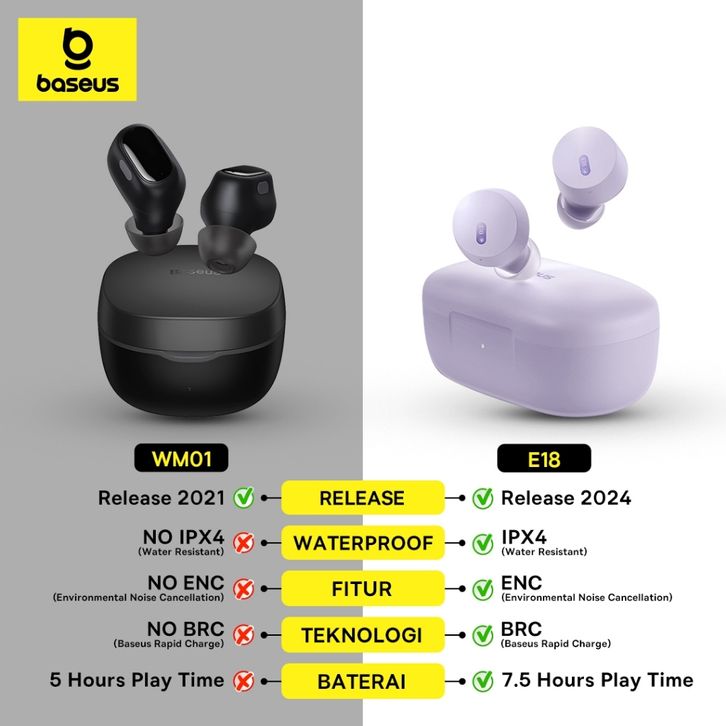 Baseus Bowie E18 Headset Bluetooth True Wireless Earphones 25H-Listening IPX4 ENC GMP Garansi Original Resmi