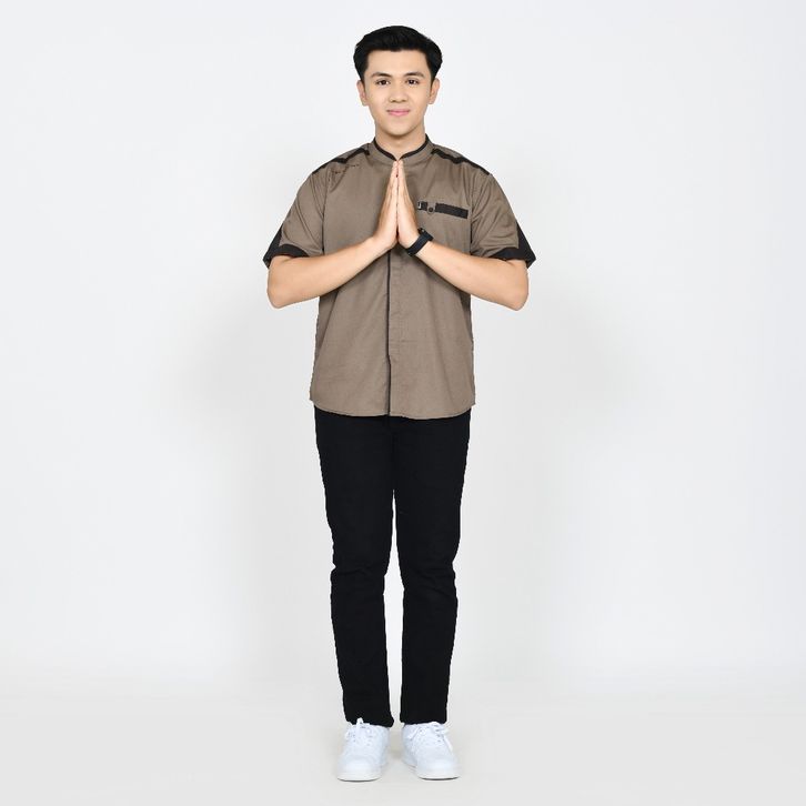 Baju Koko Pria Lengan Pendek Polos Motif Yusinsun Warna Coklat Original Elrumi
