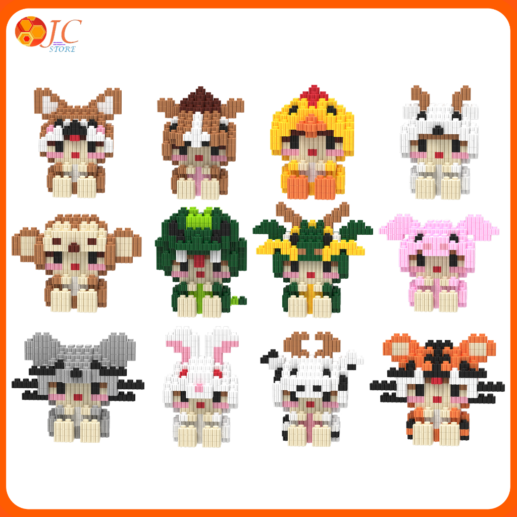 Nano Block 12 Shio Mainan Anak Balok Susun Puzzle Bricks Education Toys Hadiah Koleksi 3D DIY