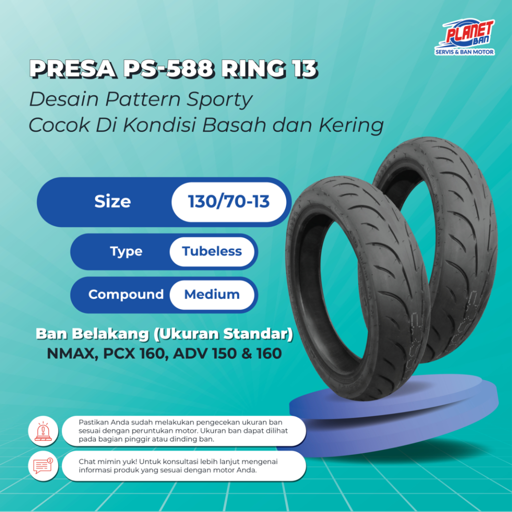 Ban Motor Ring 13 - 130/70 Presa PS-588 (Ban Motor BELAKANG NMAX, PCX 160, ADV 150, ADV 160)