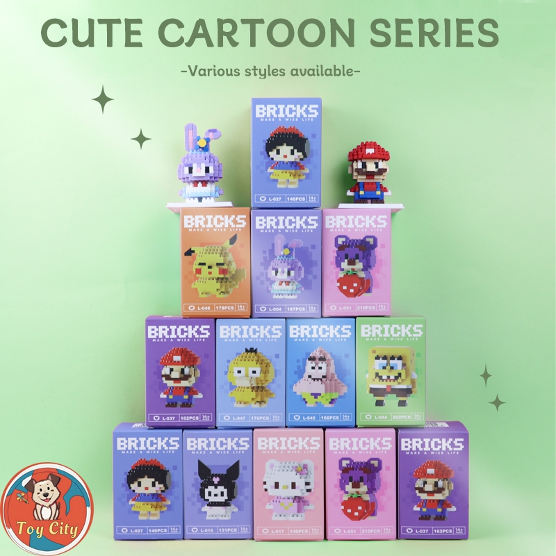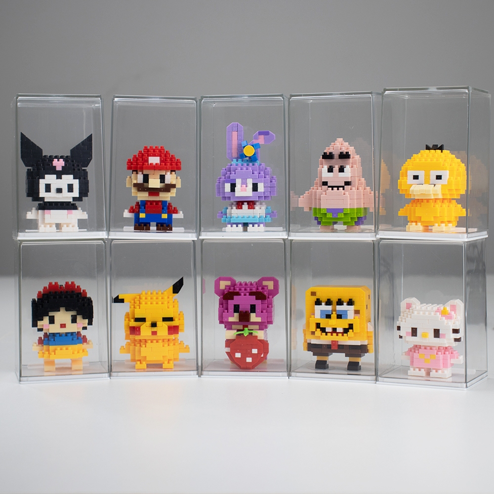 10 Styles Cartoon Mini Block with Transparent Display Box Model Building Block Toys Nano DIY Blocks for Children Gifts