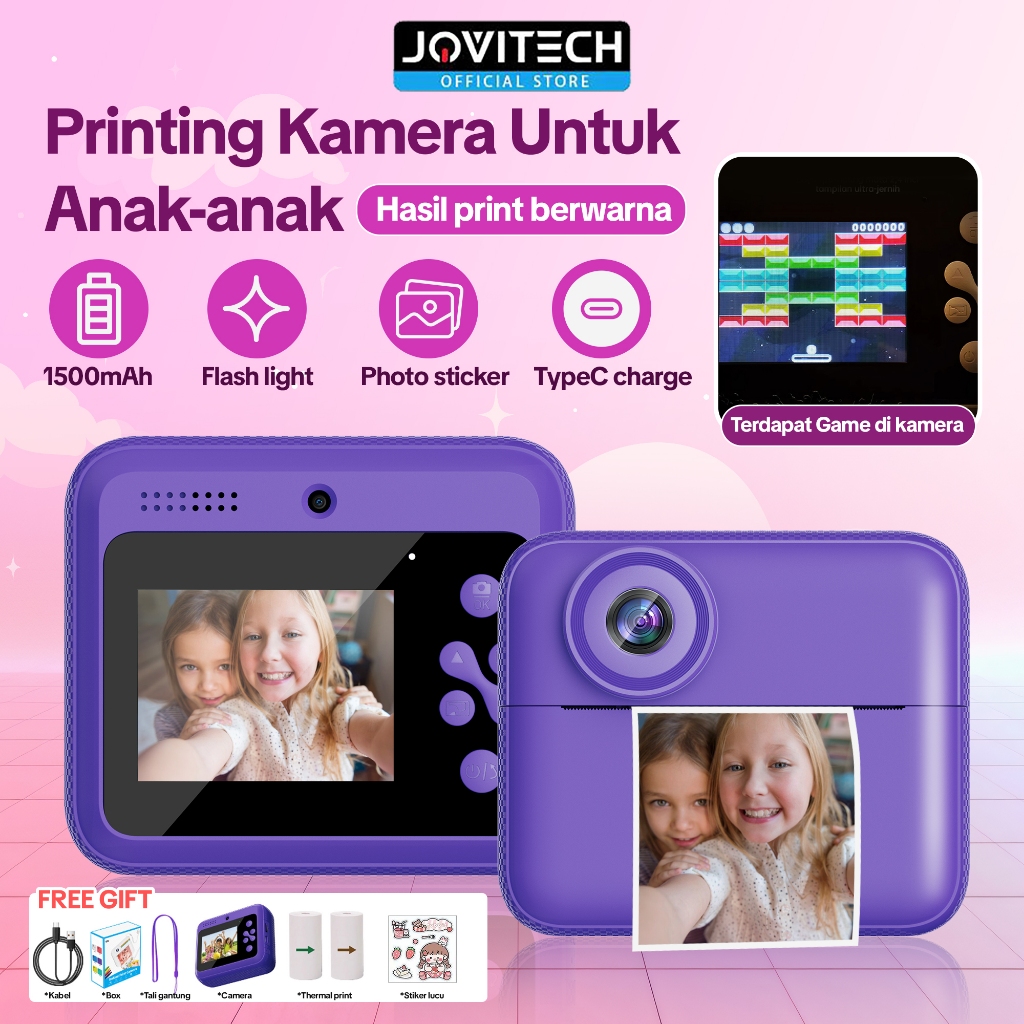 (Kamera+print 2in1 Baru)Jovitech MC08 Kids Color Camera Resolusi 48Mp Dual Kamera Instax Anak Digital Mini Bisa Print Fo