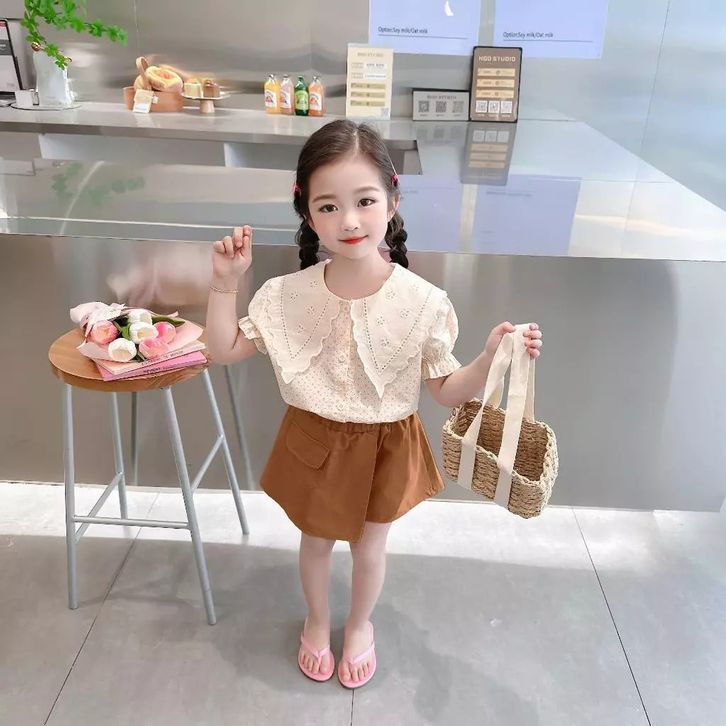 SETELAN KEMEJA BAJU ANAK PEREMPUAN LENGAN PENDEK USIA 1-4 TAHUN BAJU KATUN ANAK PEREMPUAN IMPORT BAJU LEBARAN ANAK