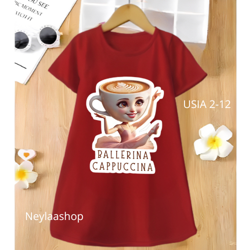 Neylaashop Daster Anak Perempuan 2 sampai 12 Tahun Dress Anak cewek Tung Tung Sahur Ballerina Cappucina