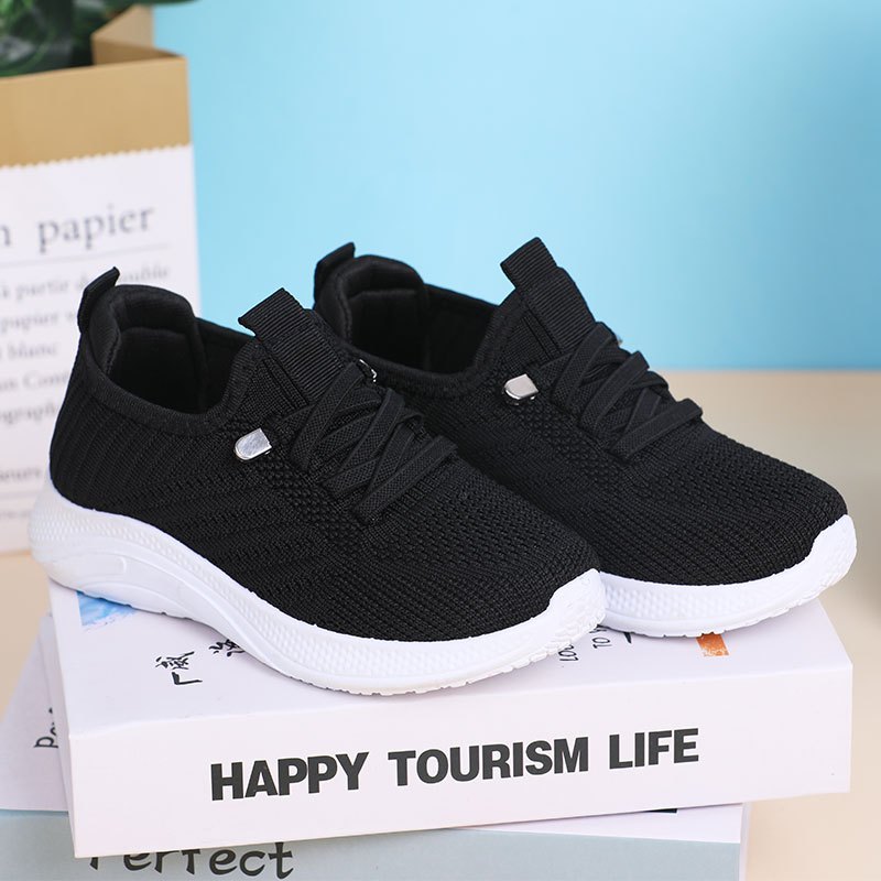 COLLIN Sepatu Sekolah Anak Hitam Slip On Rajut Sneakers Tali Mati Alas Hitam Putih - TB331-K&T