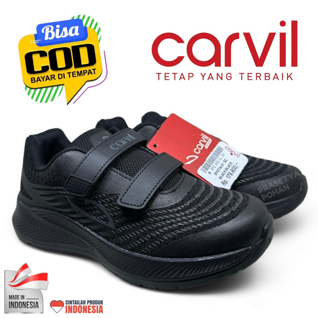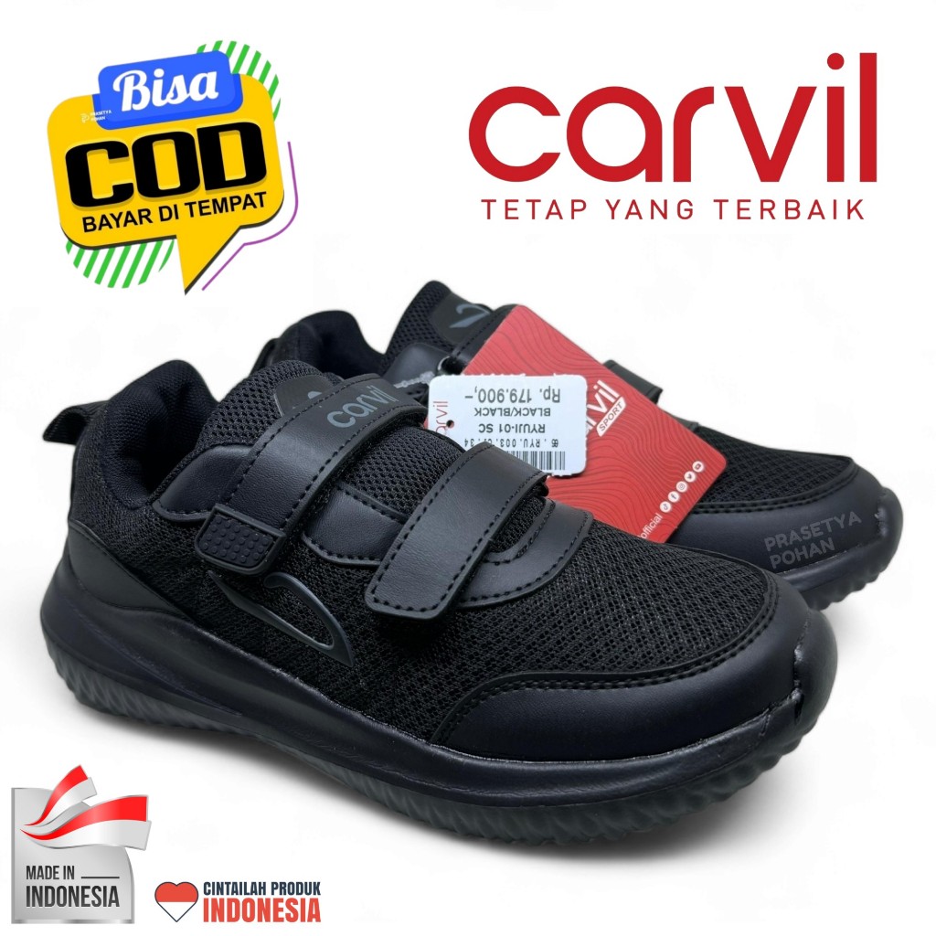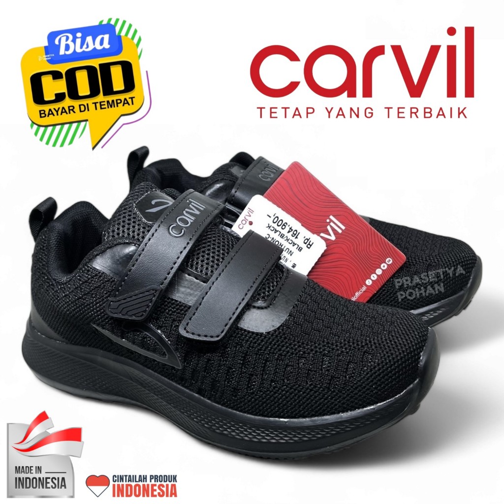 Sepatu Sekolah TK SD SMP Anti Slip Original Carvil - Sepatu Anak Laki dan Perempuan TK SD SMP - Hitam Putih Strap