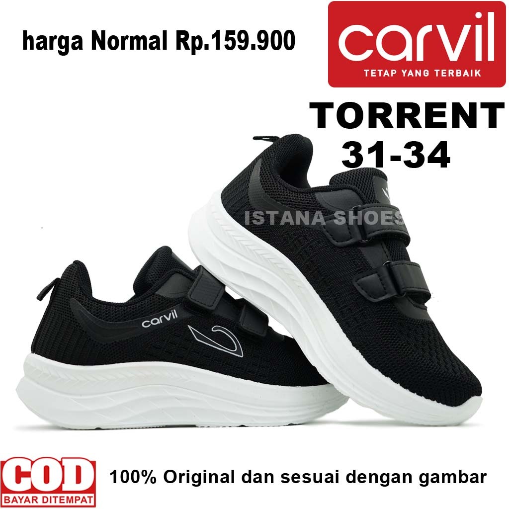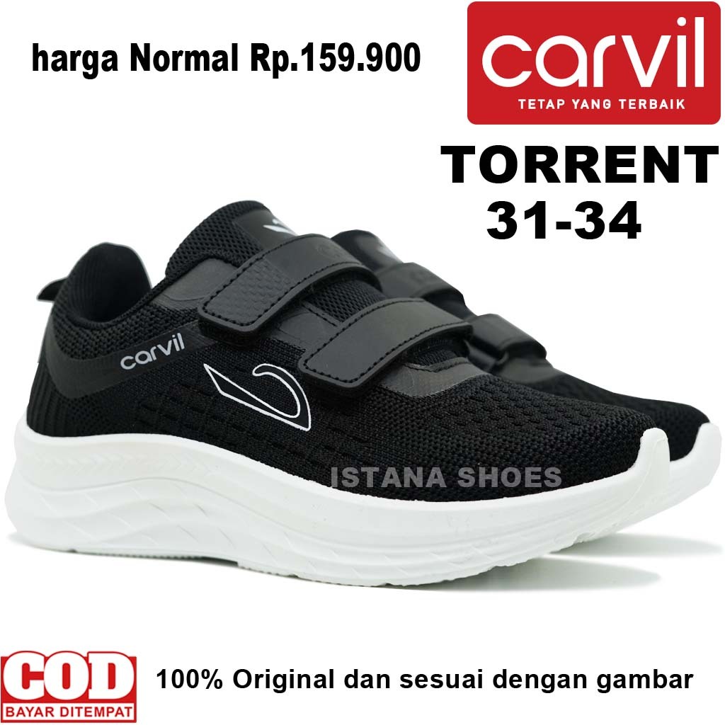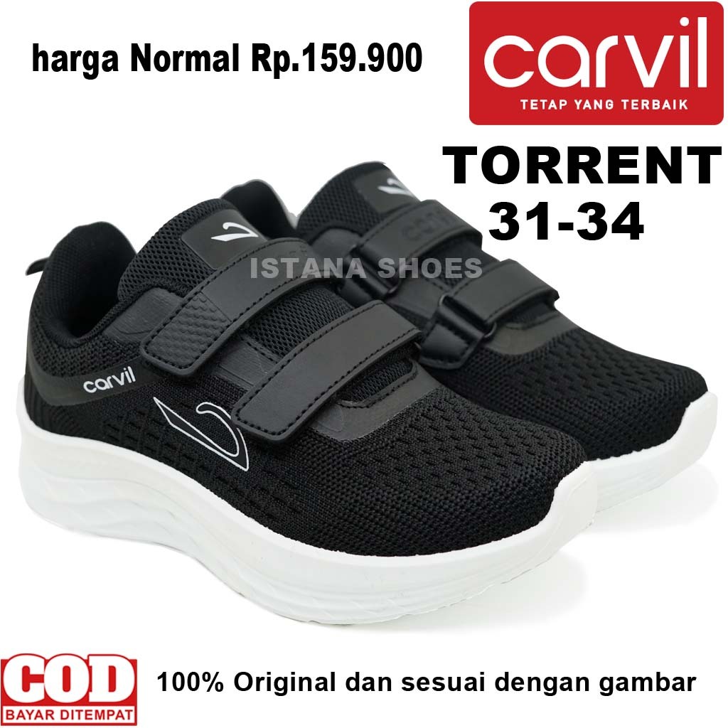 SEPATU SEKOLAH Carvil Sepatu Anak TORRENT BLACKWHITE HITAM PUTIH PEREKAT