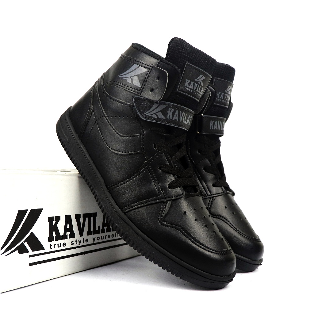 KAVILAZ True Style Yourself Sepatu Boot Anak Laki Laki Hitam Putih Sekolah Tali Combi Perekat