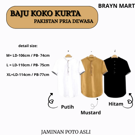 Baju Koko Pria Dewasa / Baju Koko Kurta Lengan Pendek / Koko Kurta Pakistan Pria Dewasa