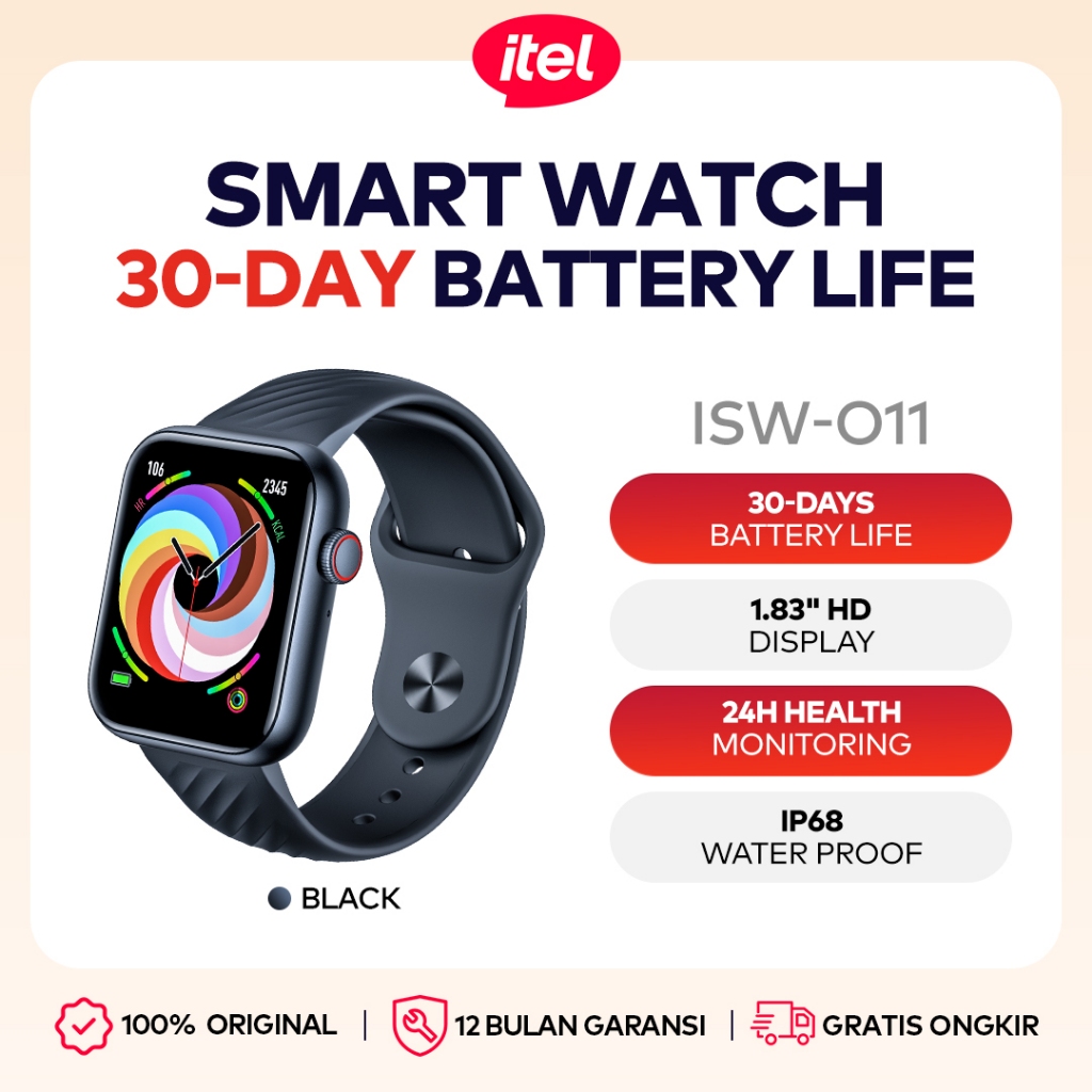 Smartwatch itel O11 Smartband - Tahan Air, Monitoring Kesehatan _ Tidur, Baterai Tahan 15 Hari, Desain Stylish