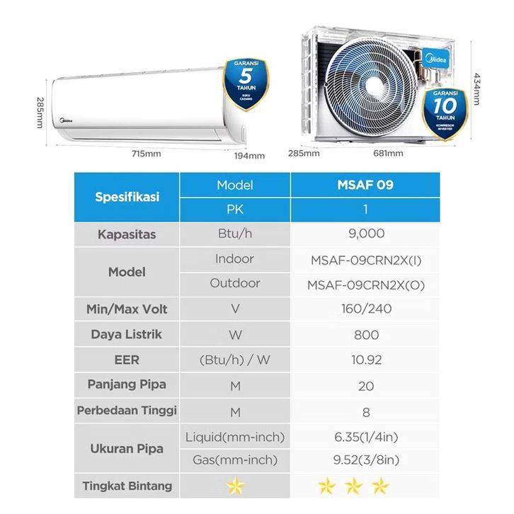 AC MIDEA 1 PK R32 MSAF 09CRN2X GARANSI RESMI AC ONLY BATAM DISKON