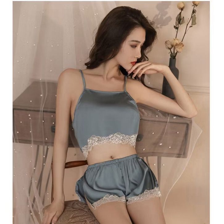 Baju Tidur Wanita Bahan Satin Halus Model Crop Top Seksi Baju Tidur Wanita Seksi 511 L 109