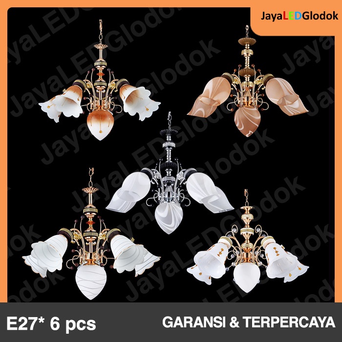 Lampu Gantung Ruang Tamu Klasik Hias Ruang Makan Antik Timur Tengah Bunga Cabang 5+1
