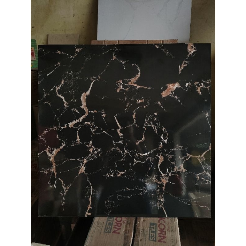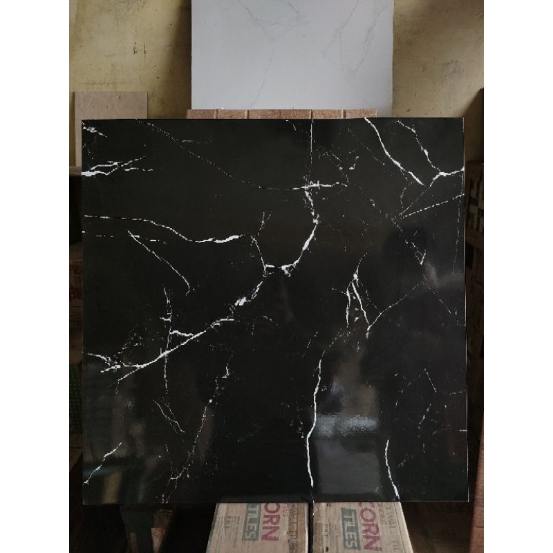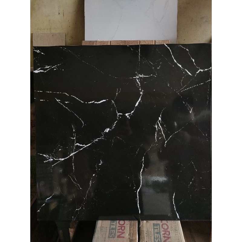 Keramik Cutting 60x60 GLOSSY CARARA MARMER HITAM PUTIH - HITAM CREAM / 60X60 HITAM SALUR PUTIH DAN CREAM