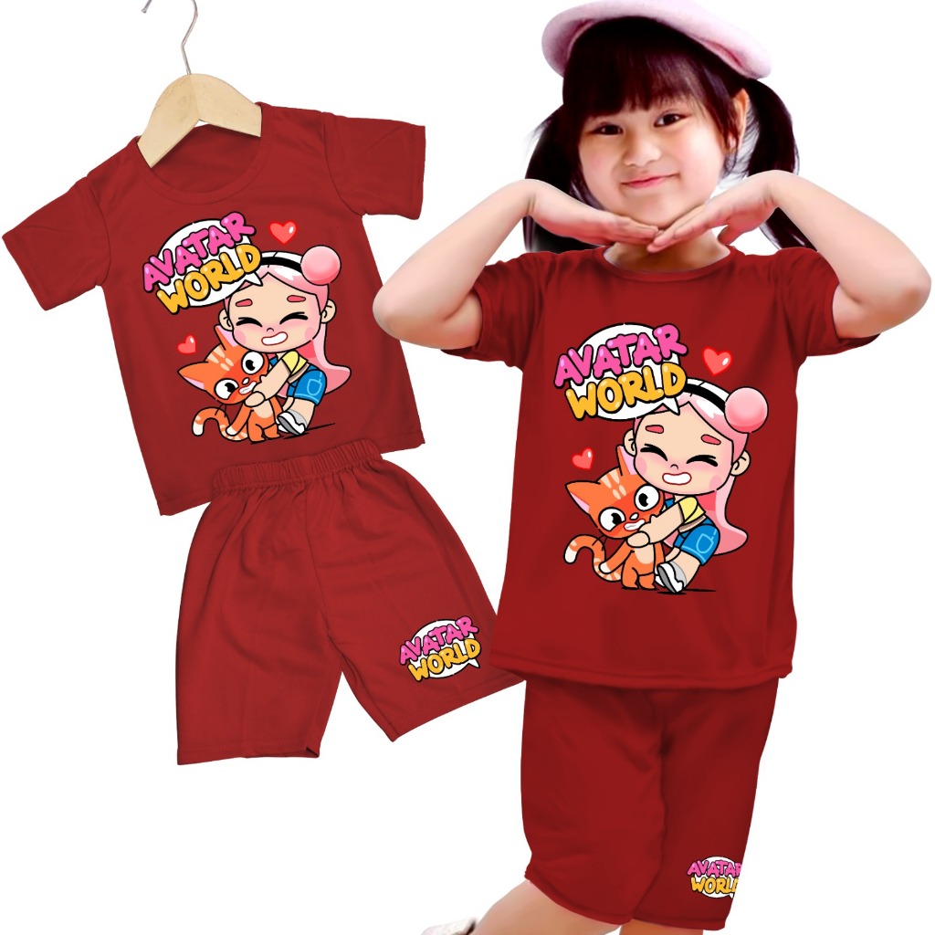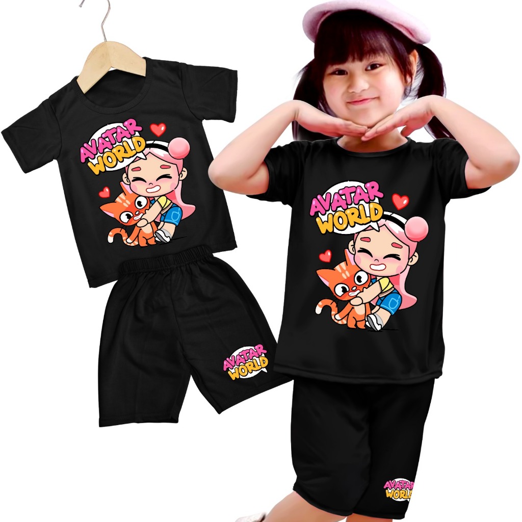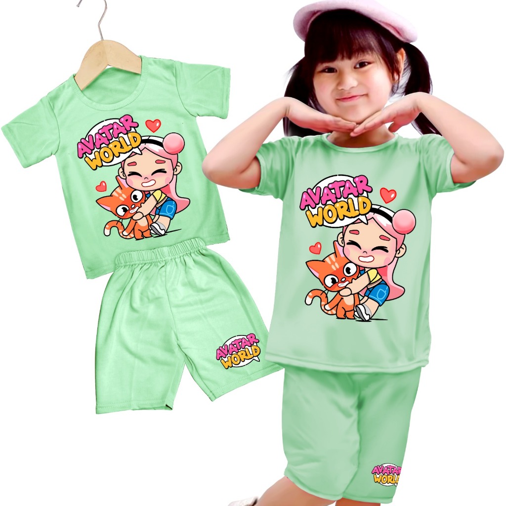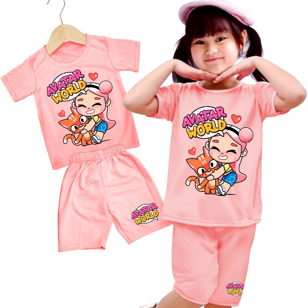 Setelan Anak Cewek Perempuan Pendek AVATAR WORLD Cewek & Cowok Lengan Pendek Celana Pendek Cetak DTF