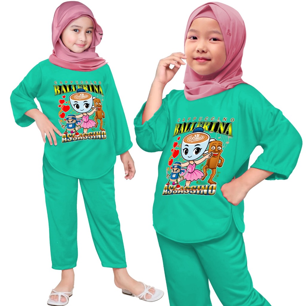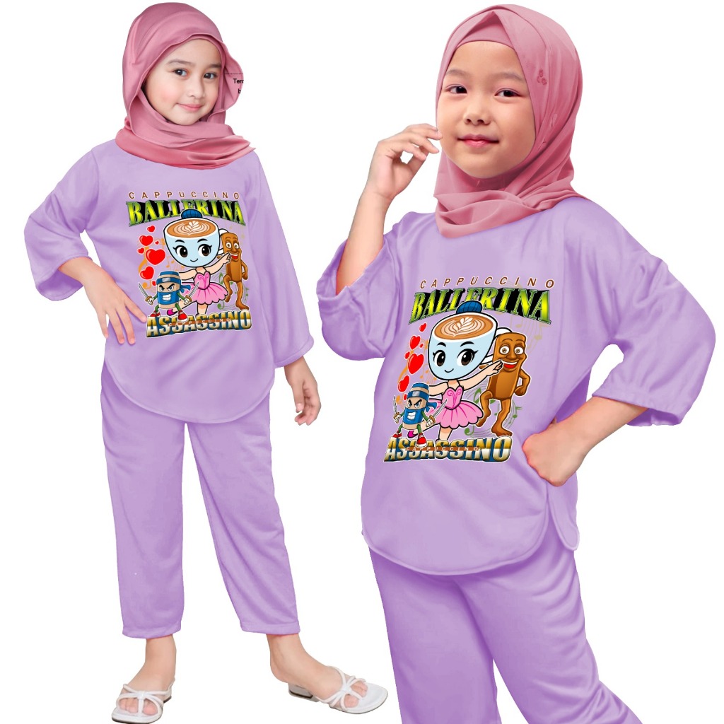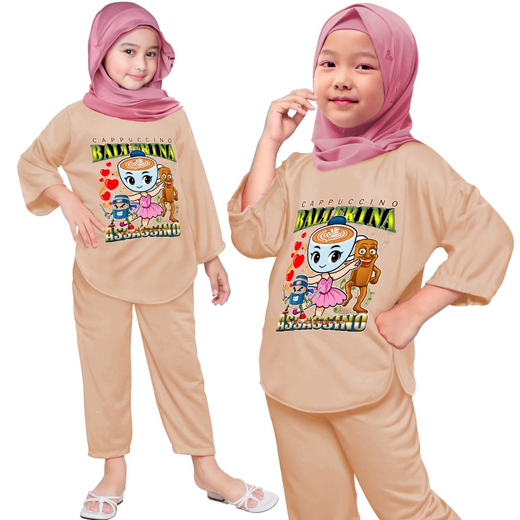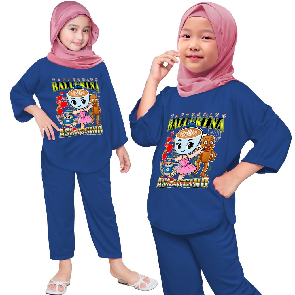 Setelan Anak Perempuan Setcel Lucu Gambar DTF | Baju Anak Cewek Ballerina Assasino Adem Usia 1–13 Tahun
