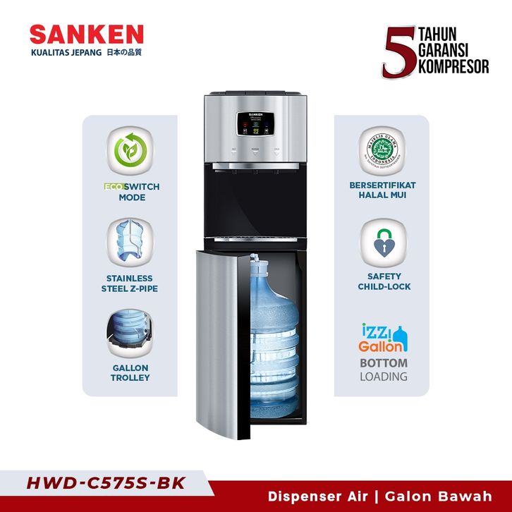 Sanken HWD-C575S-BK Water Dispenser Galon Bawah Silver Kompresor