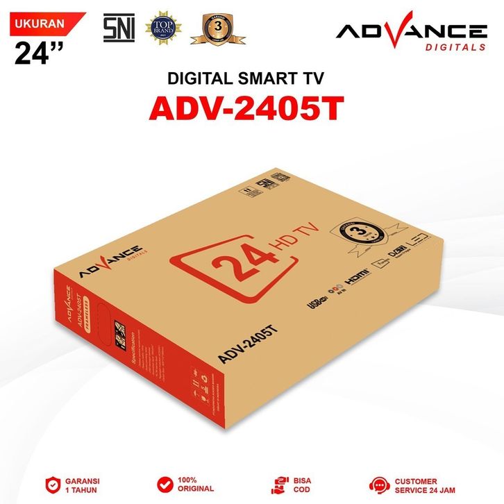 ADVANCE LED TV DIGITAL FRAMELESS 24 INCH ADV-2405T GARANSI RESMI 3 THN DISKON