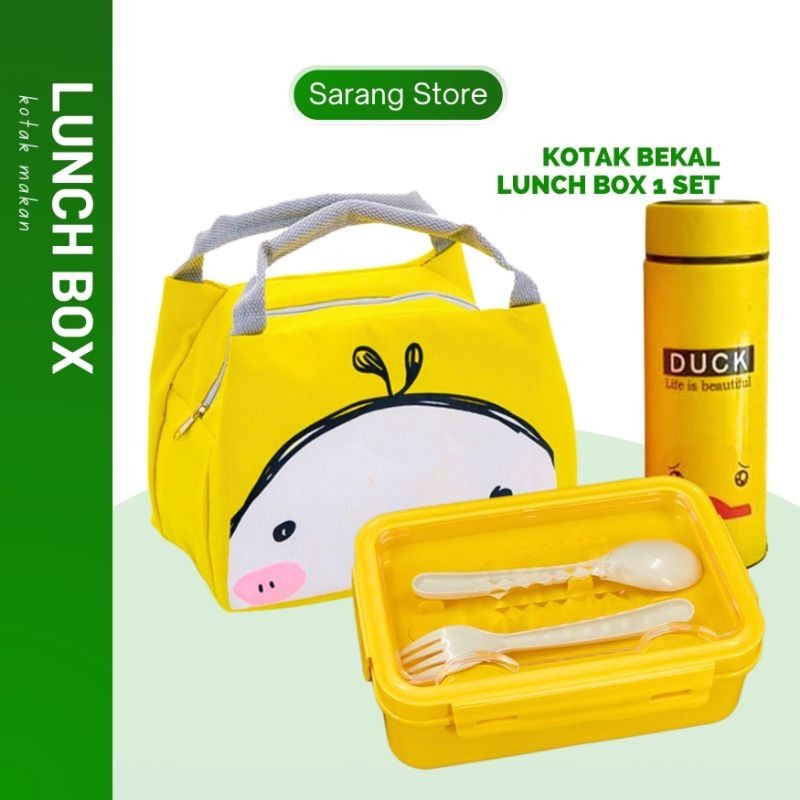 Kotak Tempat Makan Bekal Anak Sekolah Laki Laki Perempuan Lunch Box Set Tas Botol Minum Anti Tumpah