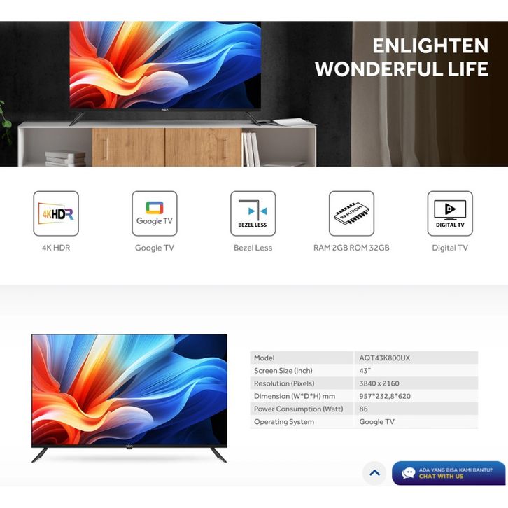 TV AQUA 43 Inch LED AQT43K800UX 4K UHD-Google TV PROMO