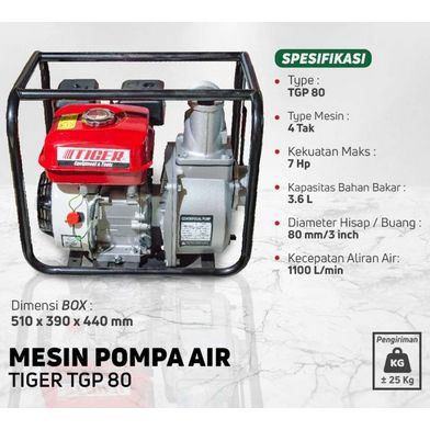 Mesin Pompa Air Sawah TIGER TGP 80 WATERPUMP 3INCH MESIN POMPA AIR IRIGASI SAWAH POMPA ALKON TIGER TGP80