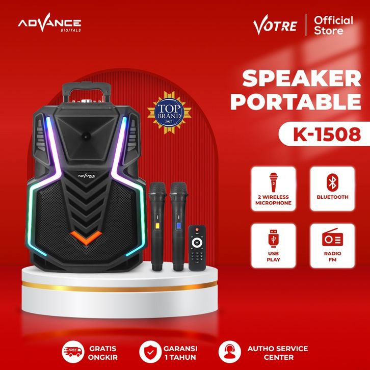 Advance K-1507 Speaker Bluetooth 15" Full Bass Outdoor/ Indoor 2 Mic Wireless Garansi Resmi 1 Tahun