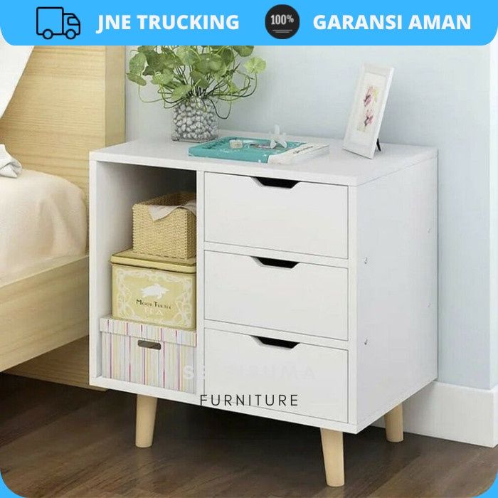 Promo Seisiruma Meja Nakas Meja Minimalis Meja Kamar Meja Samping Kamar Tidur 3 Laci Murah Keren
