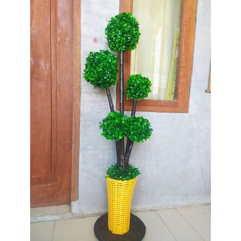 Bonsai Bulat100cm/Bunga Hias/Sudut Ruangan/Bonsai Bulat/Bunga Dolar/Bunga Hias/Bunga Pelastik