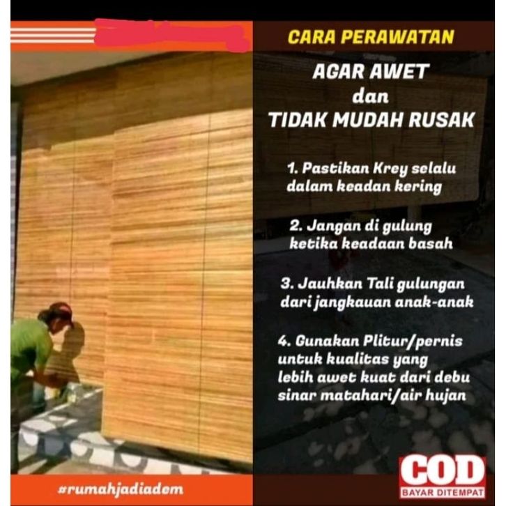 BEST SELLER TIRAI BAMBU VERNIS & PLITURE 2x2 BAMBU SAWIT LENGKAP TALI PENGGULUNG. SSEMUA UKURAN LEBAR KALI TINGGi
