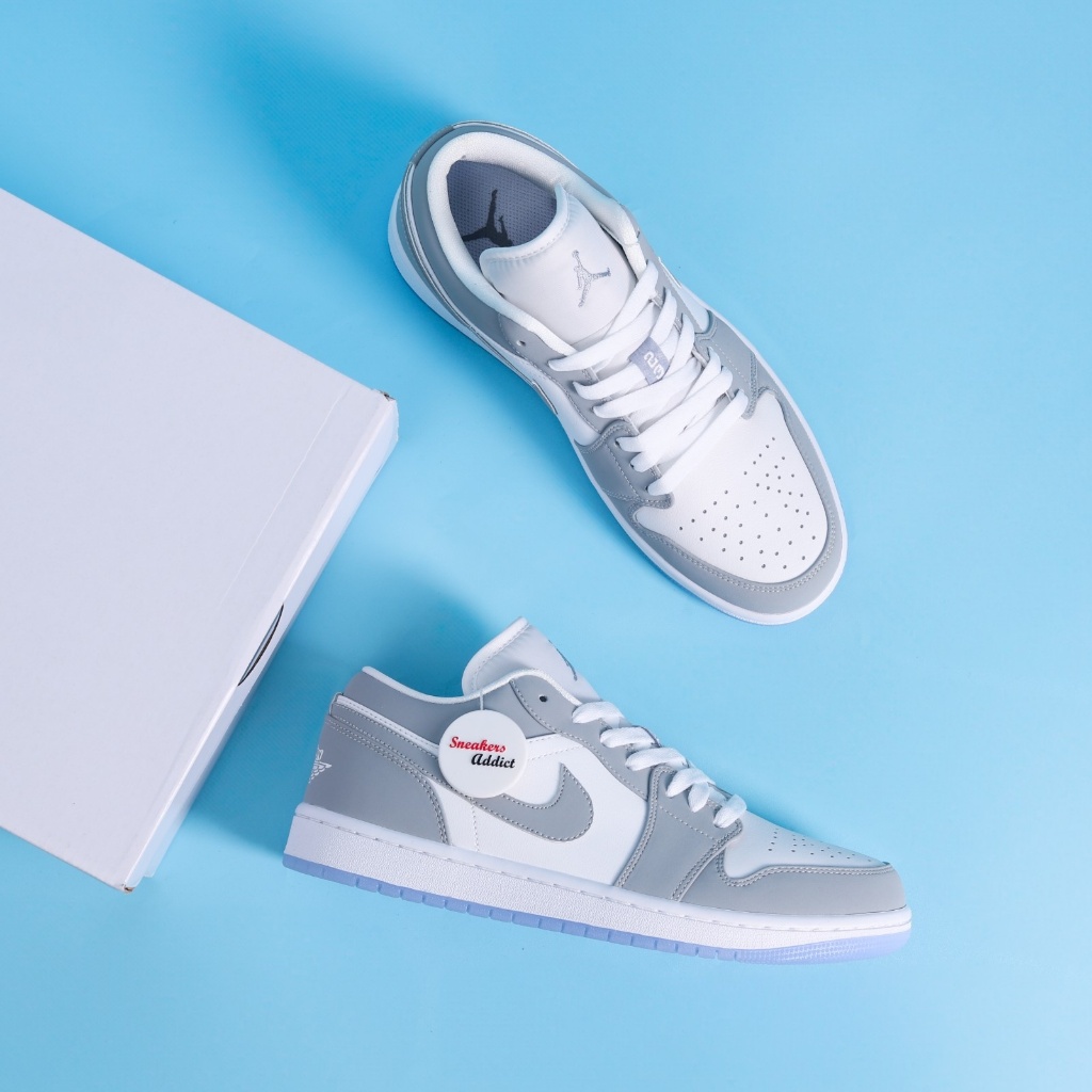Sepatu Sneakers Pria Nike Air Jordan 1 Low White Wolf Grey Berkualitas Kekinian Murah Promo Gea Terlaris Gratis Ongkir
