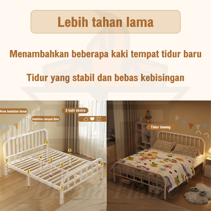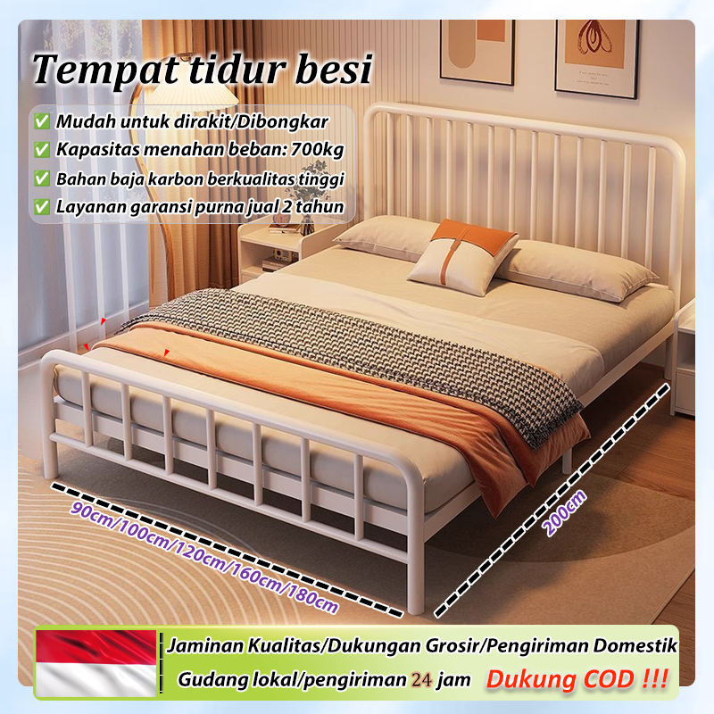 Tempat tidur besi Tempat tidur besi retro Prancis Tempat tidur baja yang menahan beban Kamar tidur