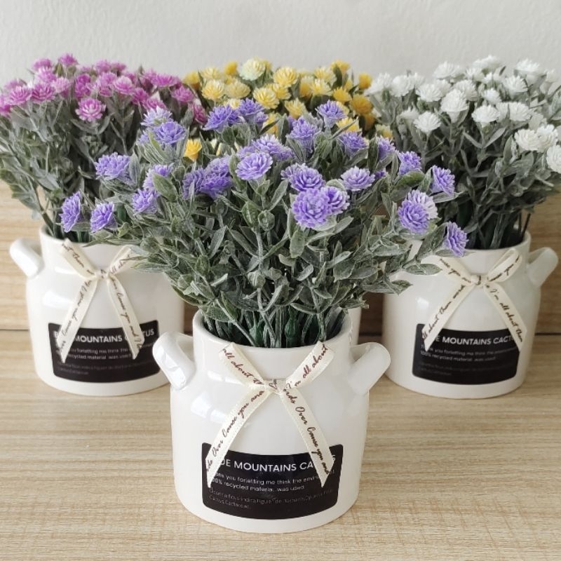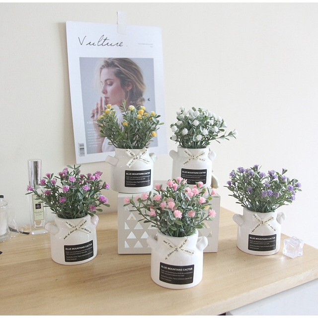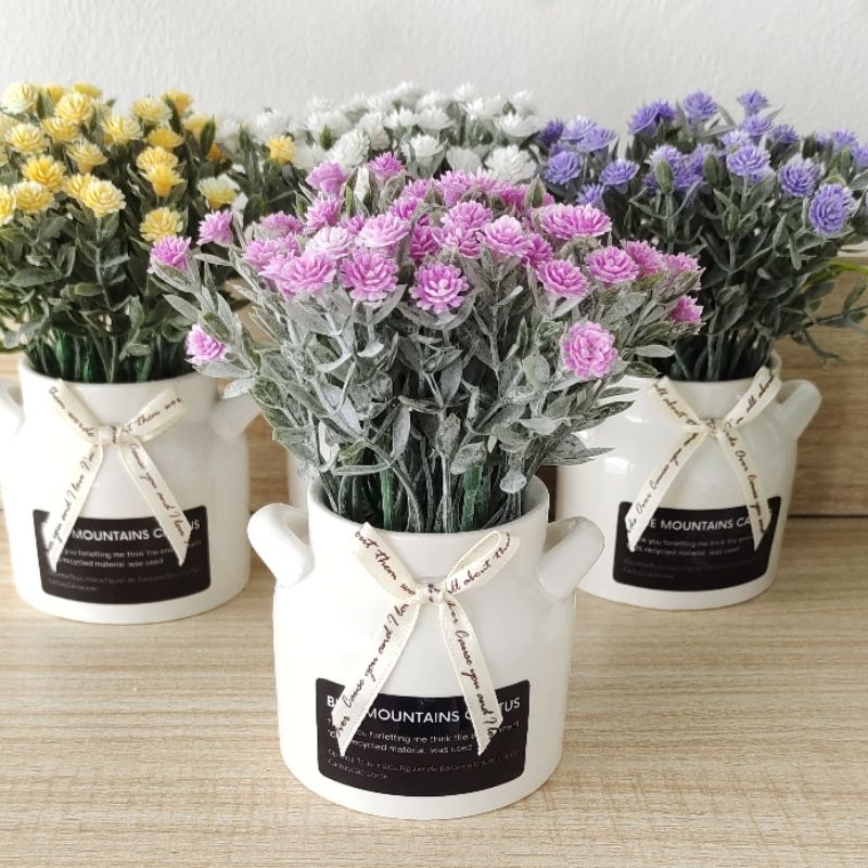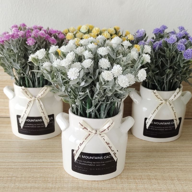 Bunga Plastik Tanaman Artificial Flower Gypsophila Vas Keramik Bunga Palsu Hias